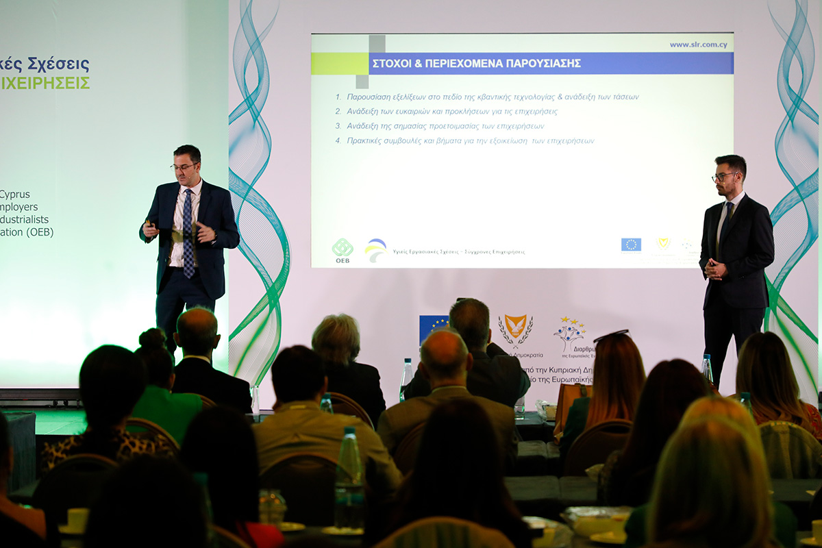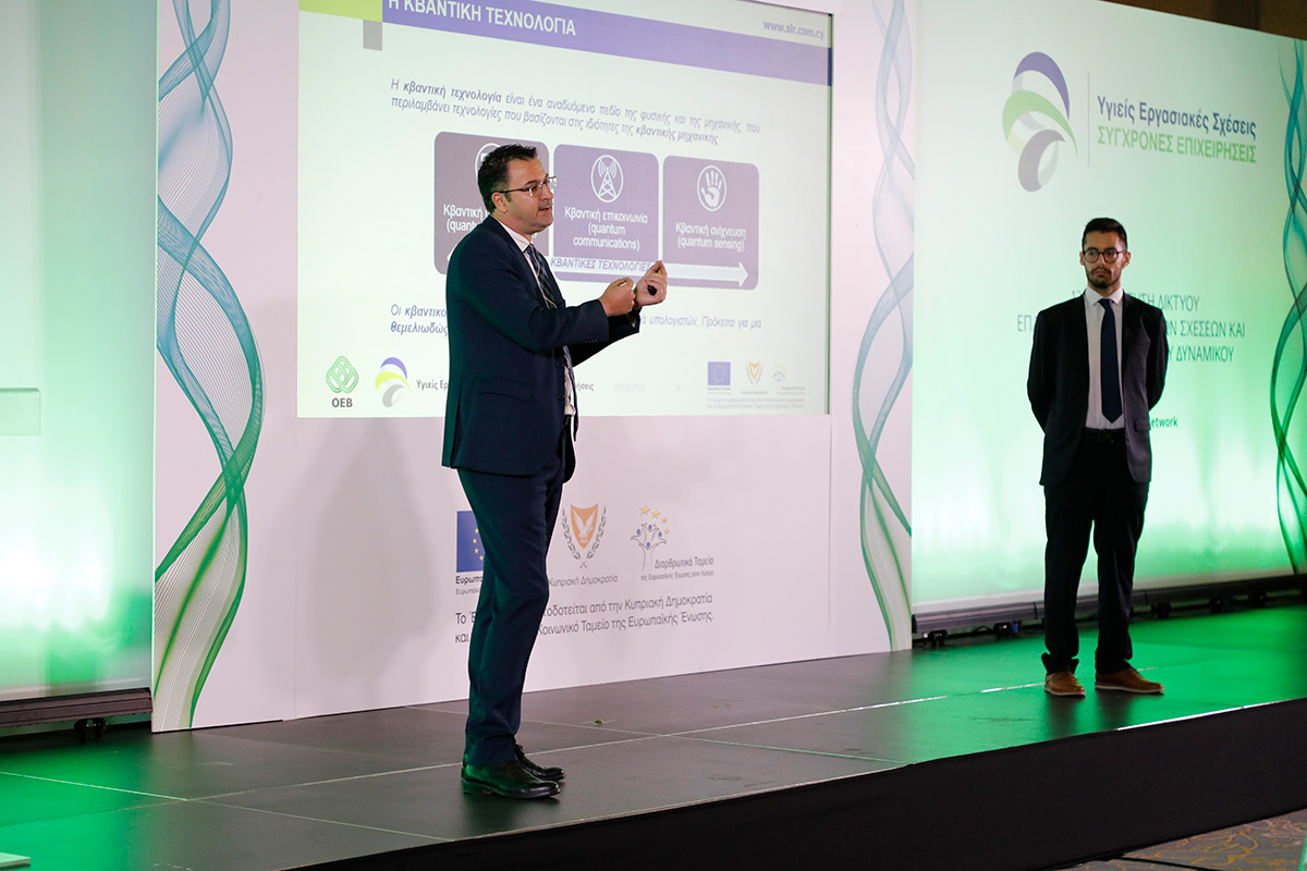 Οι κύριοι Πέτρος Κατσιμάρδος και Γιώργος Κωσταράς, ανώτερα στελέχη της BK Plus Europe, ανέπτυξαν στην παρουσίασή τους τις εξελίξεις και τάσεις στο πεδίο της κβαντικής τεχνολογίας, καθώς και τις αναμενόμενες επιπτώσεις για την τεχνολογία, τις επιχειρήσεις και την οικονομία. Κυριότερα χαρακτηριστικά της τεχνολογίας αυτής, όταν ωριμάσει και διαδοθεί σε μεγάλη κλίμακα στα επόμενα χρόνια, είναι η γεωμετρική αύξηση στην επεξεργαστική ισχύ των Η/Υ και οι τεράστιες βελτιώσεις στον τομέα της τεχνητής νοημοσύνης και της κυβερνοασφάλειας. Στόχος της παρουσίασης ήταν η ενημέρωση και ευαισθητοποίηση των επιχειρήσεων για τις προοπτικές της τεχνολογίας αυτής και για την ανάγκη ανάπτυξης των κατάλληλων δεξιοτήτων και επιχειρησιακής κουλτούρας.