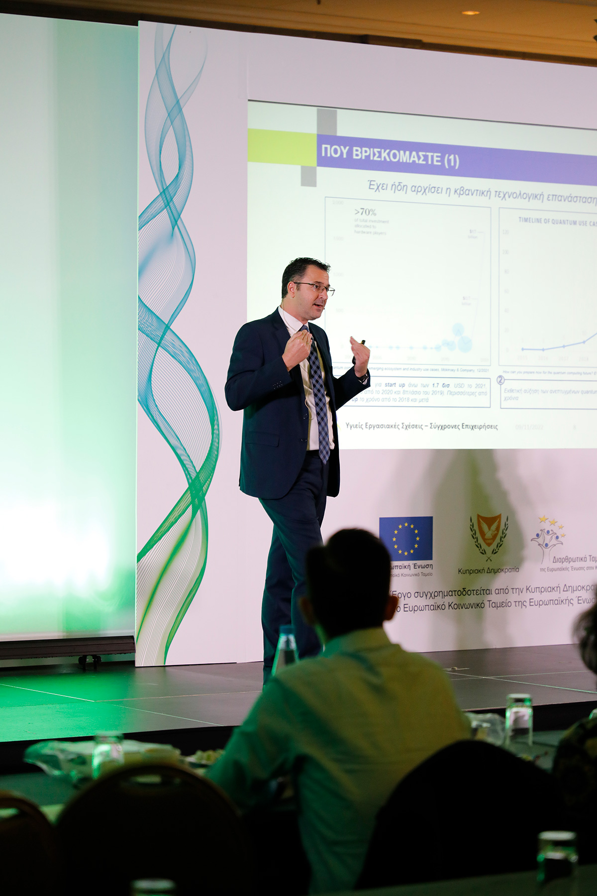 Η παρουσίαση θα αναδείξει τις εξελίξεις και τάσεις στο πεδίο της κβαντικής τεχνολογίας καθώς και τις αναμενόμενες επιπτώσεις για τις επιχειρήσεις και την οικονομία. Βασικό πυλώνα της παρουσίασης θα αποτελέσουν οι μελλοντικές ευκαιρίες και προκλήσεις για τις Κυπριακές επιχειρήσεις μέσω της εξοικείωσης τους με την κβαντική τεχνολογία, η ανάγκη ένταξης της στα επιχειρησιακά τους μοντέλα καθώς και πρακτικά βήματα για την εισαγωγή δεξιοτήτων και κουλτούρας που θα καταστήσουν τις επιχειρήσεις “quantum ready and skilled”