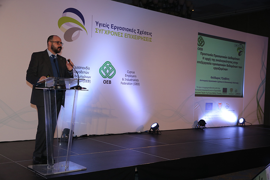 Ακολούθως, ο κ. Θεόδωρος Τζιοβάνη, επίσης Λειτουργός Εργασιακών Σχέσεων & Κοινωνικής Πολιτικής της ΟΕΒ, παρουσίασε απόφαση Διοικητικού Δικαστηρίου σχετική με την νομοθεσία περί επεξεργασίας δεδομένων προσωπικού χαρακτήρα. Συγκεκριμένα, η παρουσίαση αφορούσε την εφαρμογή της αρχής της αναλογικότητας στην επεξεργασία προσωπικών δεδομένων των εργαζομένων, με ειδική αναφορά σε συγκεκριμένη περίπτωση (case study).