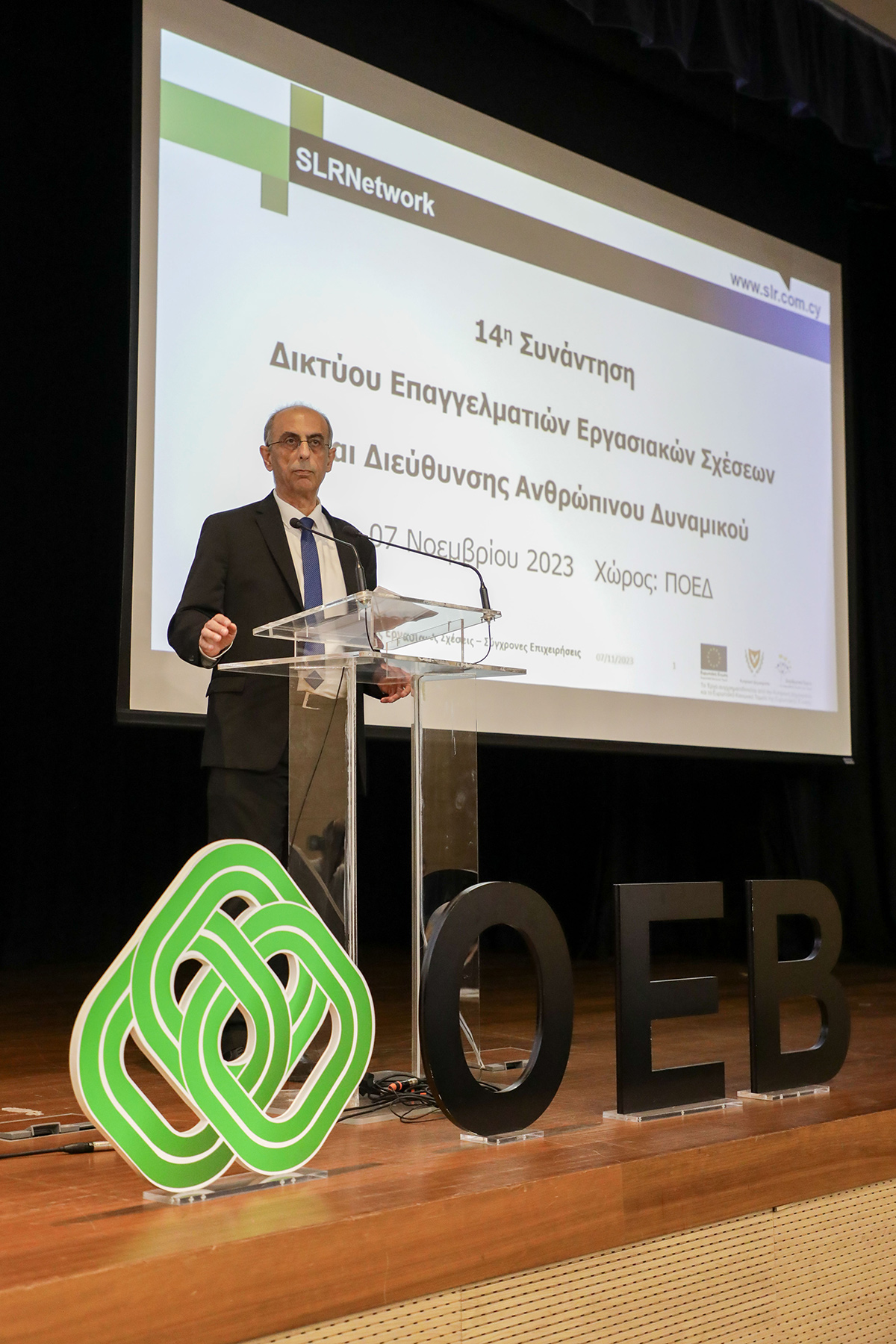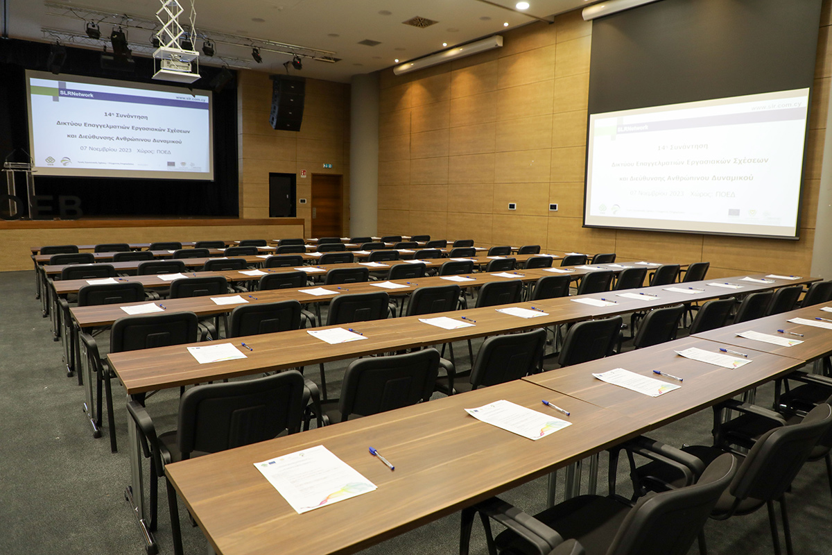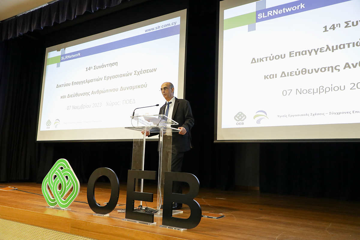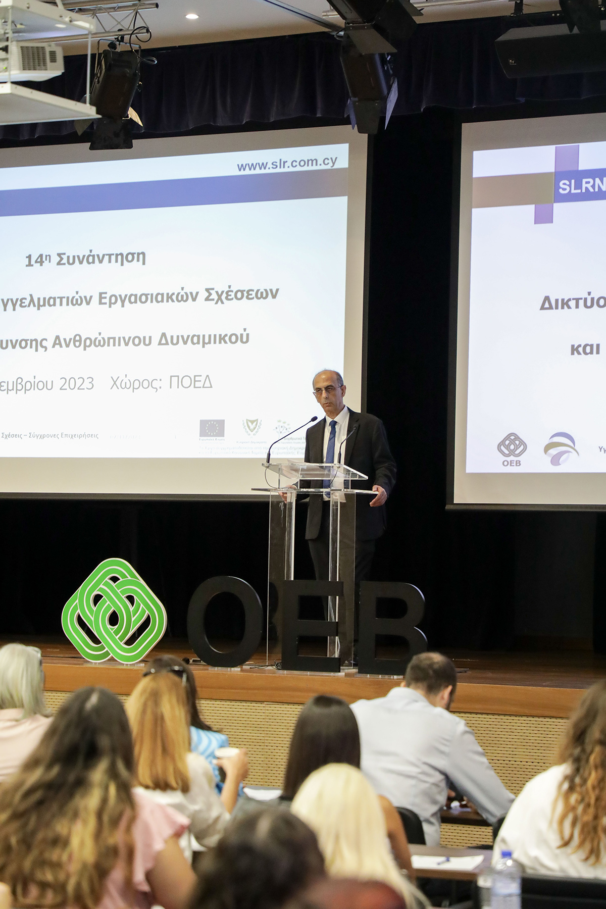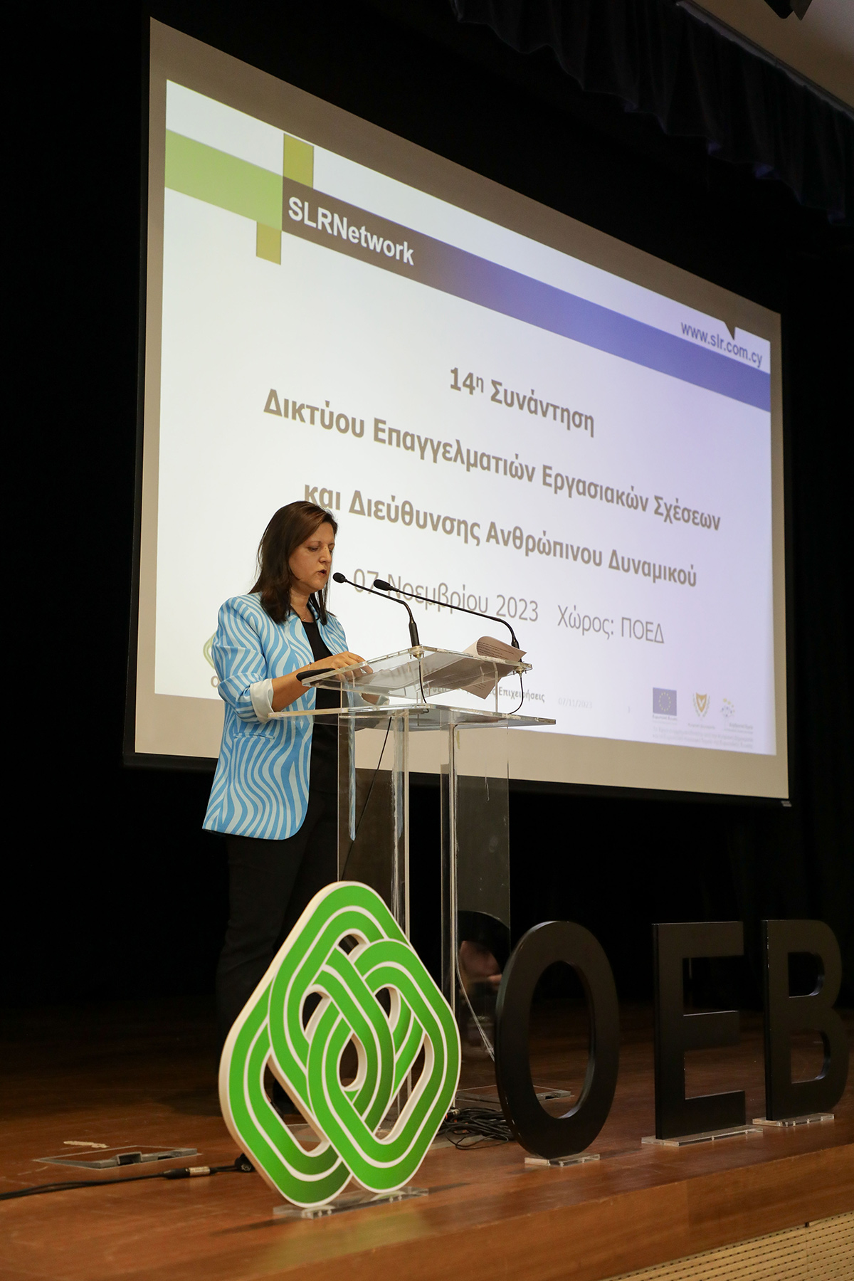 Η εκδήλωση ολοκλήρωσης του συγχρηματοδοτούμενου έργου από την Κυπριακή Δημοκρατία και το Ευρωπαϊκό Κοινωνικό Ταμείο της Ε.Ε. με τίτλο «Υγιείς Εργασιακές Σχέσεις, Σύγχρονες Επιχειρήσεις – Φάση Β» καθώς και η 14η συνάντηση του Δικτύου Επαγγελματιών στον Τομέα Εργασιακών Σχέσεων και Διεύθυνσης Ανθρώπινου Δυναμικού (SLRNetwork) πραγματοποιήθηκε την Τρίτη, 7 Νοεμβρίου 2023 στην παρουσία 150 στελεχών επιχειρήσεων. Κατά τη συνάντηση έγιναν παρουσιάσεις για σημαντικά θέματα εργασιακού ενδιαφέροντος και οι συμμετέχοντες είχαν την ευκαιρία να υποβάλουν τα ερωτήματά τους και να ανταλλάξουν απόψεις με τους ομιλητές.