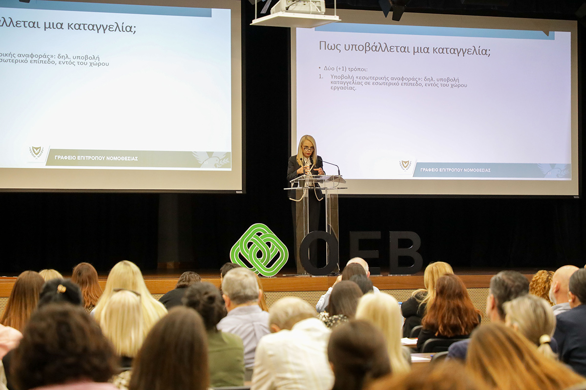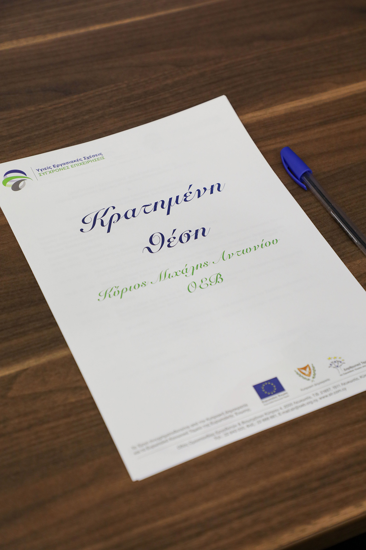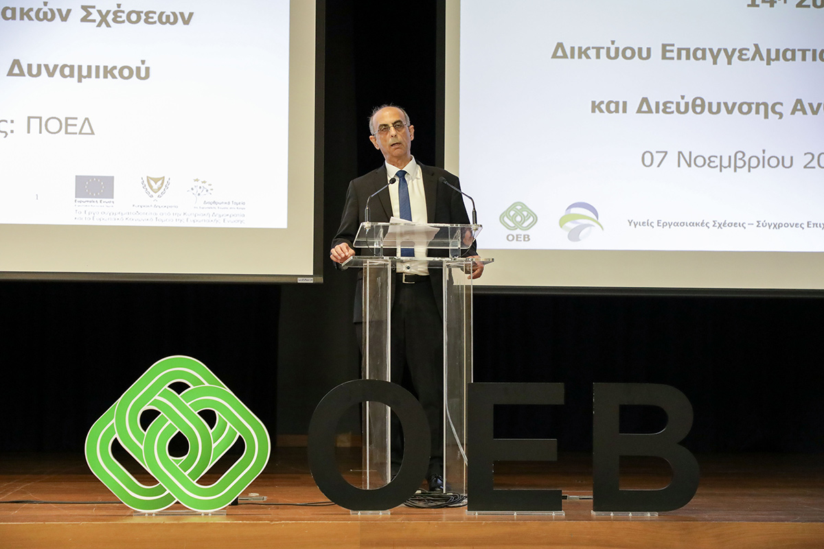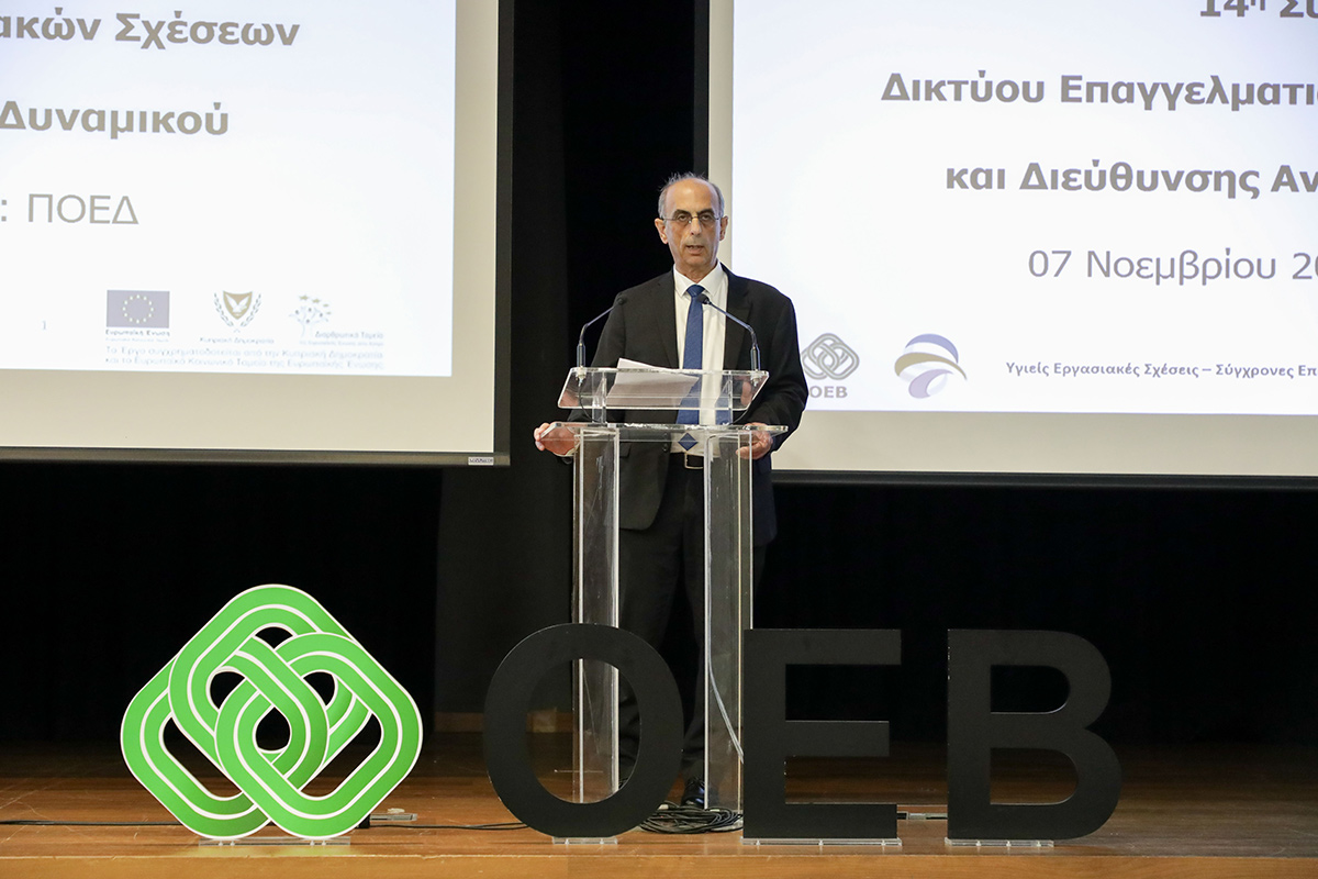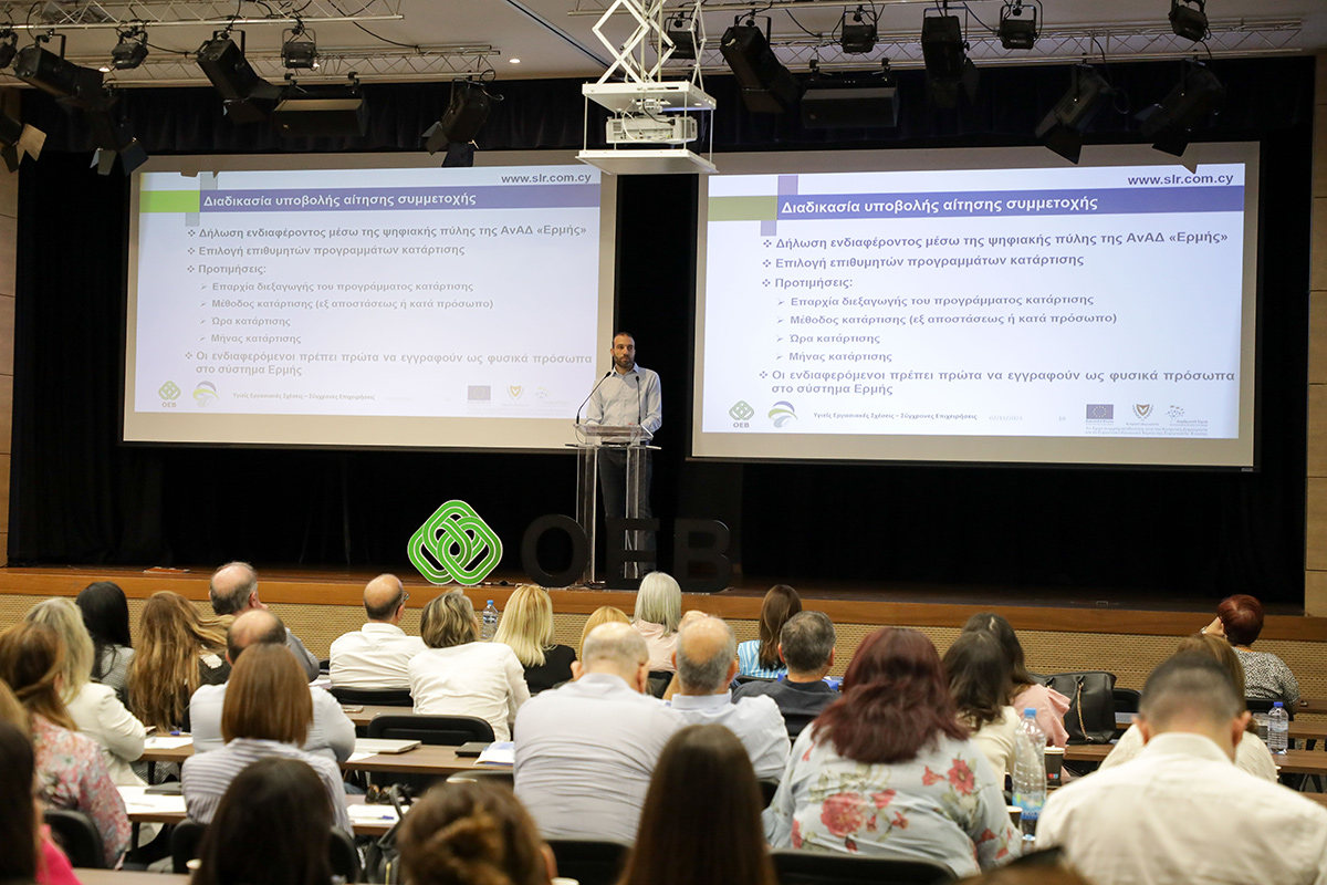 Η εκδήλωση ολοκλήρωσης του συγχρηματοδοτούμενου έργου από την Κυπριακή Δημοκρατία και το Ευρωπαϊκό Κοινωνικό Ταμείο της Ε.Ε. με τίτλο «Υγιείς Εργασιακές Σχέσεις, Σύγχρονες Επιχειρήσεις – Φάση Β» καθώς και η 14η συνάντηση του Δικτύου Επαγγελματιών στον Τομέα Εργασιακών Σχέσεων και Διεύθυνσης Ανθρώπινου Δυναμικού (SLRNetwork) πραγματοποιήθηκε την Τρίτη, 7 Νοεμβρίου 2023 στην παρουσία 150 στελεχών επιχειρήσεων. Κατά τη συνάντηση έγιναν παρουσιάσεις για σημαντικά θέματα εργασιακού ενδιαφέροντος και οι συμμετέχοντες είχαν την ευκαιρία να υποβάλουν τα ερωτήματά τους και να ανταλλάξουν απόψεις με τους ομιλητές.