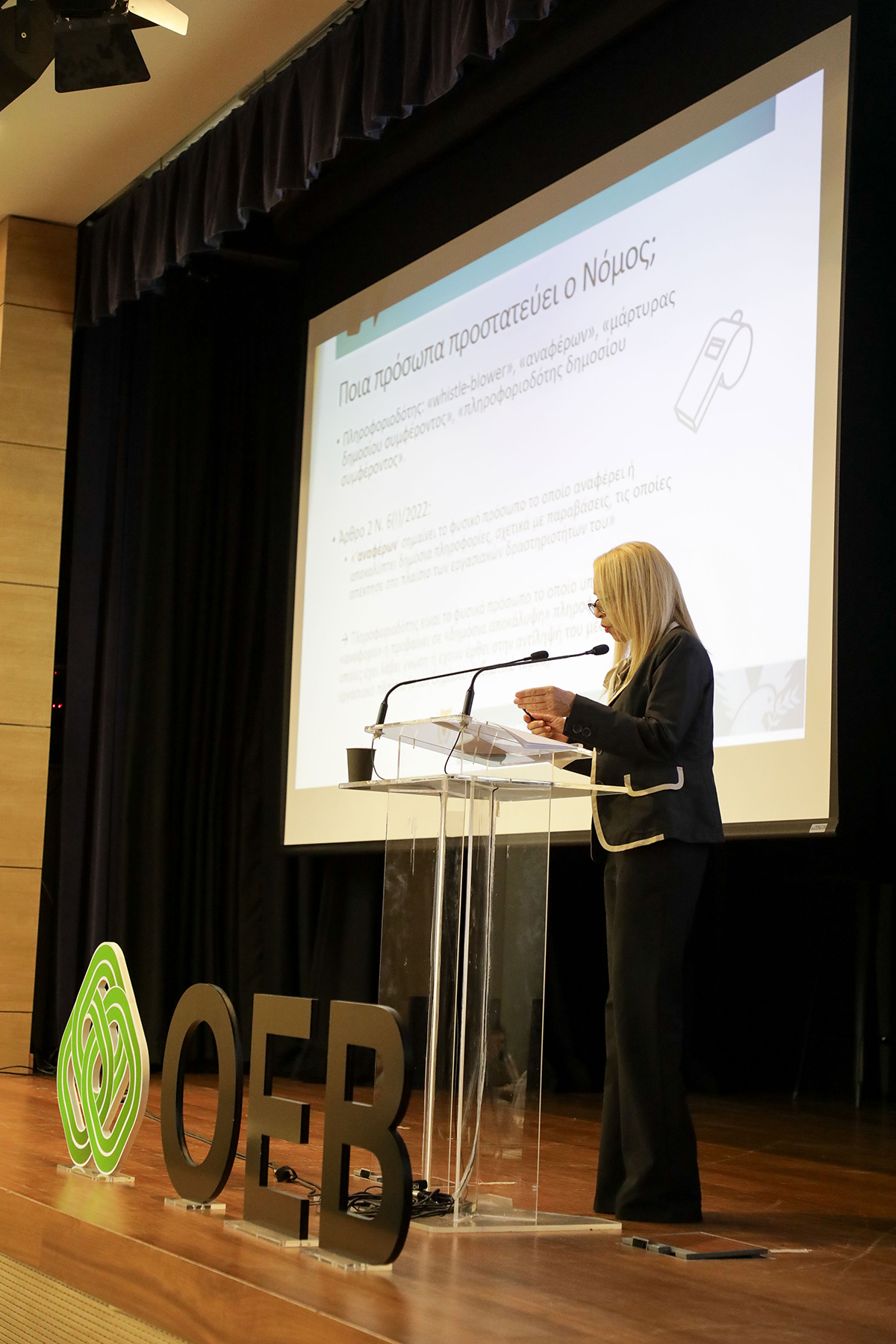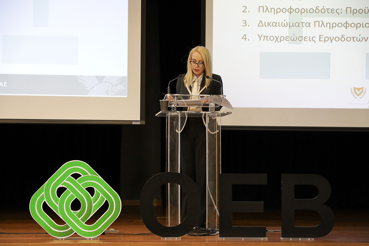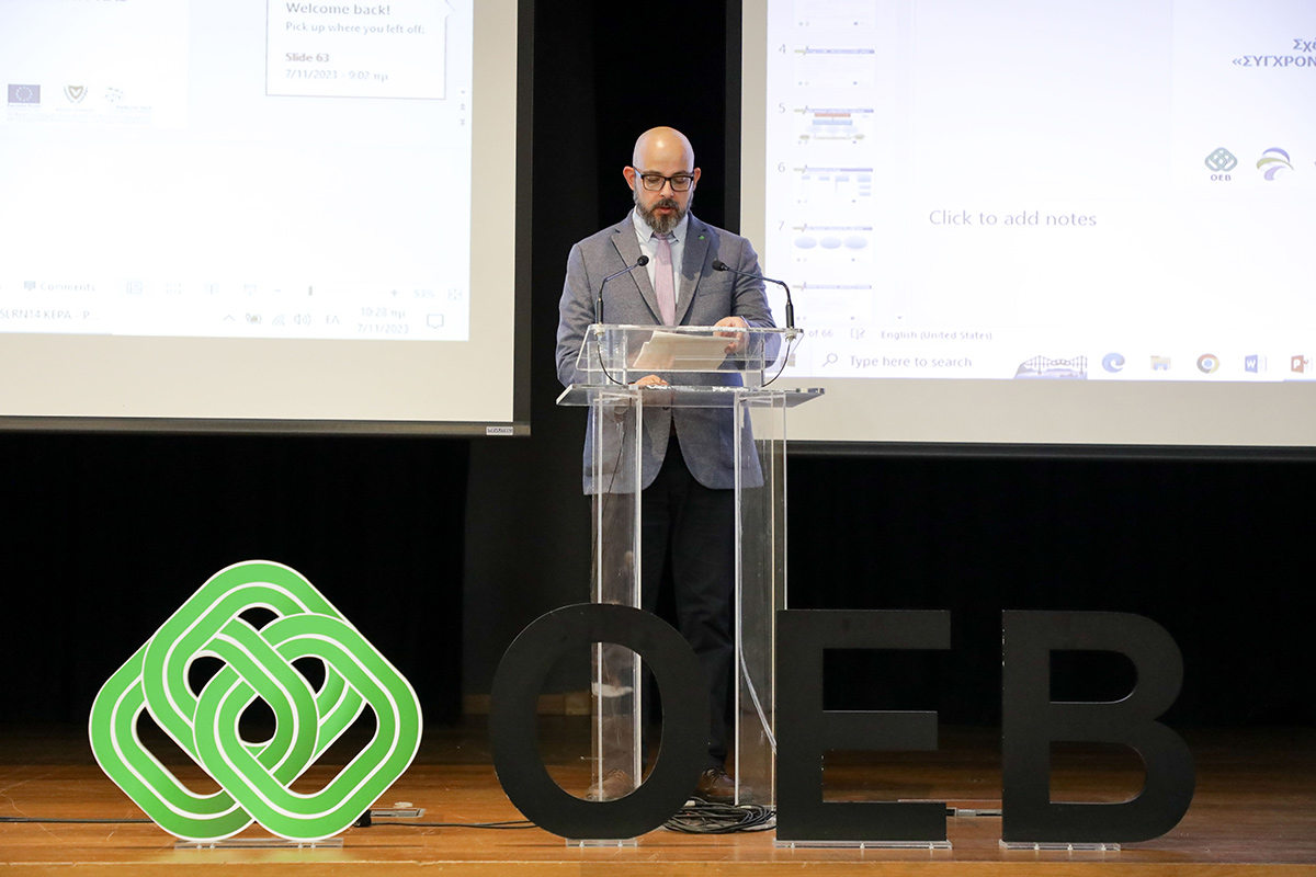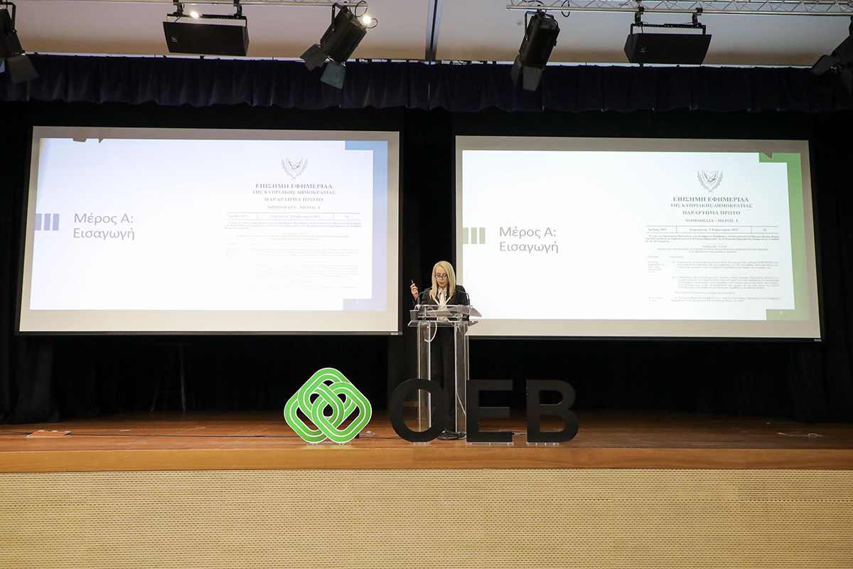 Στη συνέχεια, ακολούθησε χαιρετισμός από την Αναπληρώτρια Προϊστάμενη της Μονάδας Ευρωπαϊκού Κοινωνικού Ταμείου του Υπουργείου Εργασίας και Κοινωνικών Ασφαλίσεων η οποία εξέφρασε την εκτίμηση της προς την ηγεσία της ΟΕΒ για τον πρωταγωνιστικό της ρόλο στην υλοποίηση του έργου, καθώς και για την αξιέπαινη προσπάθεια της να στηρίξει τις κυπριακές επιχειρήσεις. Επιπρόσθετα, ανέφερε ότι λόγω της επιτυχούς υλοποίησης του, το έργο θα συνεχιστεί στα πλαίσια του προγράμματος Πολιτικής Συνοχής «ΘΑλΕΙΑ 2021-2027», δίνοντας την ευκαιρία σε ακόμα περισσότερες επιχειρήσεις να επωφεληθούν από τις δράσεις του.