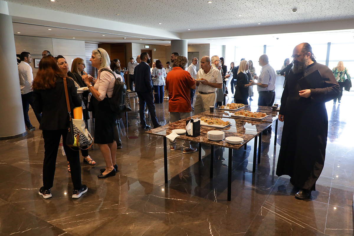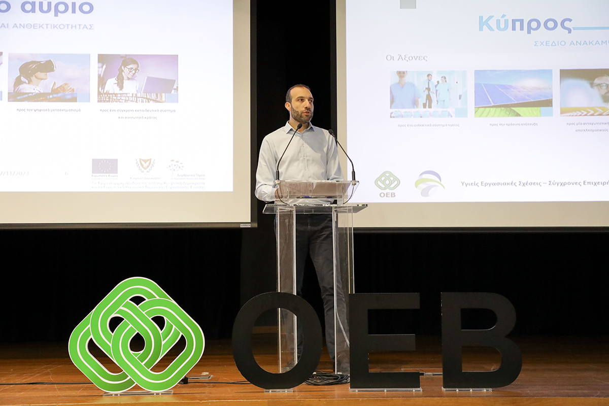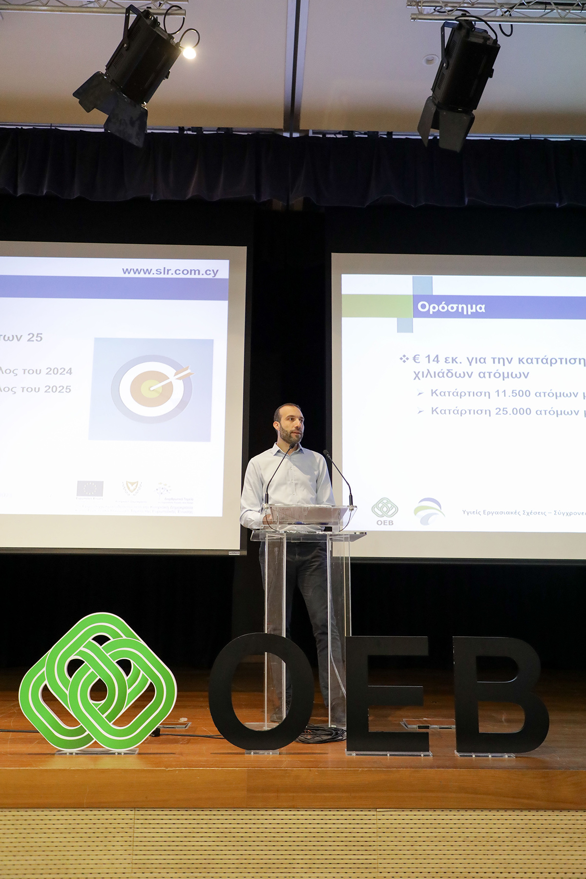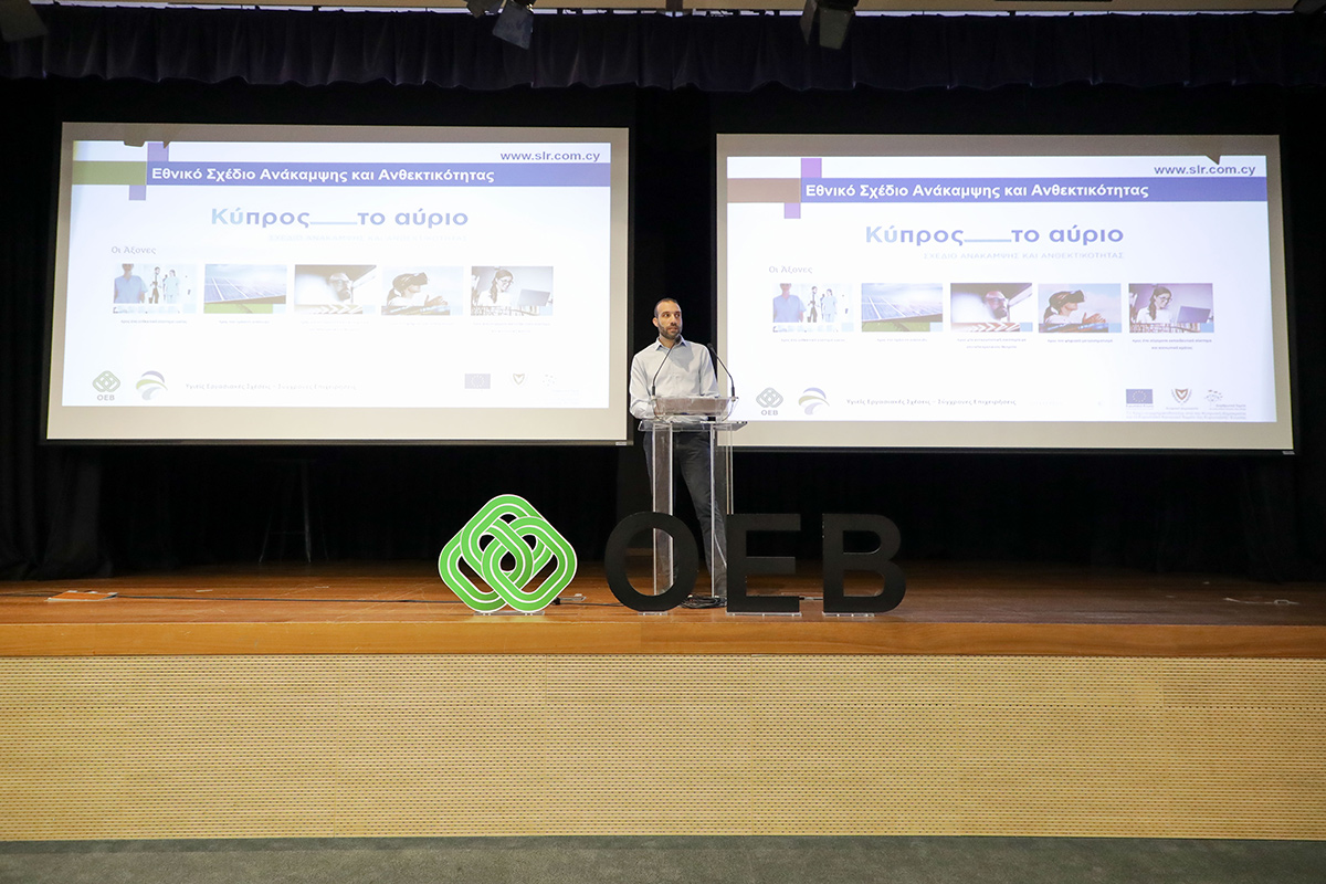 Στο καλωσόρισμά του, ο κος Μιχάλης Αντωνίου, Γενικός Διευθυντής της Ομοσπονδίας Εργοδοτών & Βιομηχάνων (ΟΕΒ) αναφέρθηκε στις προκλήσεις για την οικονομία από την κρίση στο Ισραήλ και στην ανάγκη διαφύλαξης της οικονομίας της Κύπρου ως μέσο παραγωγής πλούτου και ευημερίας για όλους. Επιπρόσθετα ευχαρίστησε τις συμμετέχουσες επιχειρήσεις στο έργο, τα Μέλη του SLRNetwork για την ενεργό συμμετοχή τους στις συναντήσεις του Δικτύου καθώς επίσης και το Υπουργείο Εργασίας και Κοινωνικών Ασφαλίσεων, τη Γενική Διεύθυνση Ανάπτυξης του Υπουργείου Οικονομικών, τη Μονάδα Ευρωπαϊκού Κοινωνικού Ταμείου και το Γενικό Λογιστήριο της Δημοκρατίας για την αγαστή συνεργασία κατά την υλοποίηση και διαχείριση του έργου.