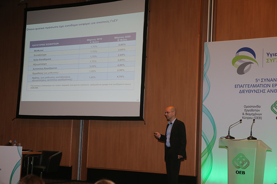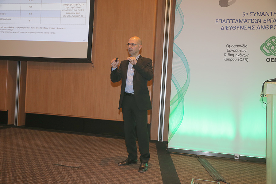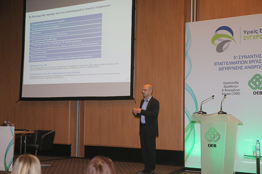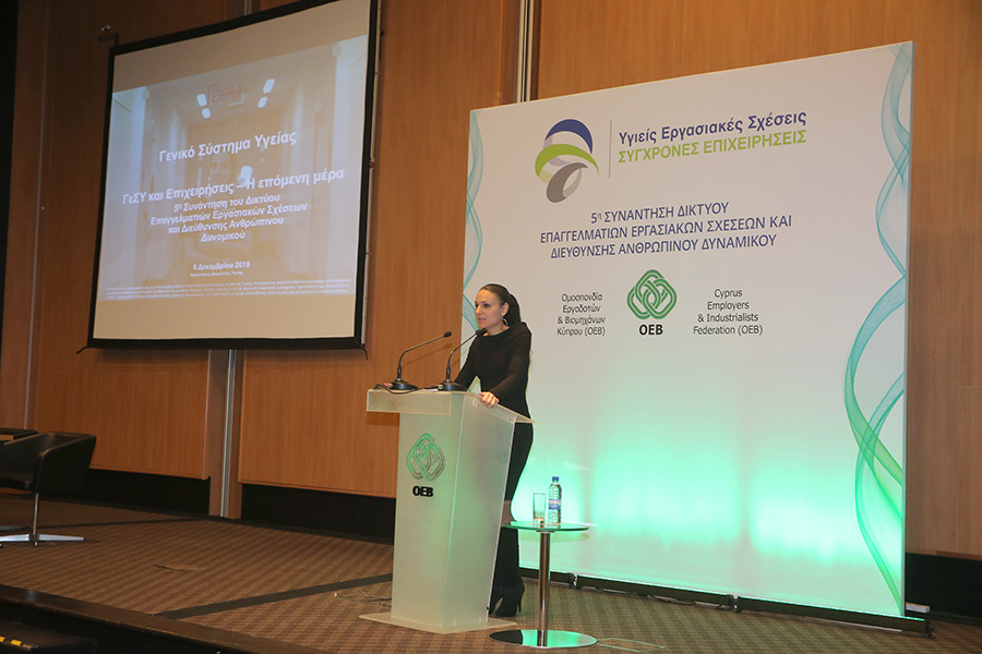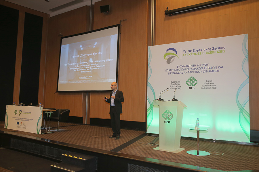 Εξάλλου, ο αναπληρωτής διευθυντής του Οργανισμού Ασφάλισης Υγείας (ΟΑΥ), Ανδρέας Παπακωνσταντίνου αναφέρθηκε στους τρόπους με τους οποίους αναμένεται να επηρεαστούν οι επιχειρήσεις από την επόμενη μέρα της εφαρμογής του ΓεΣΥ. Ειδικότερα, ο κ. Παπακωνσταντίνου παρουσίασε τις υπηρεσίες υγείας οι οποίες θα καλύπτονται από το ΓεΣΥ, την διαδικασία πληρωμής των εισφορών, καθώς επίσης τον τρόπο με τον οποίο αναμένεται να λειτουργεί το σύστημα, αφού τεθεί σε εφαρμογή.