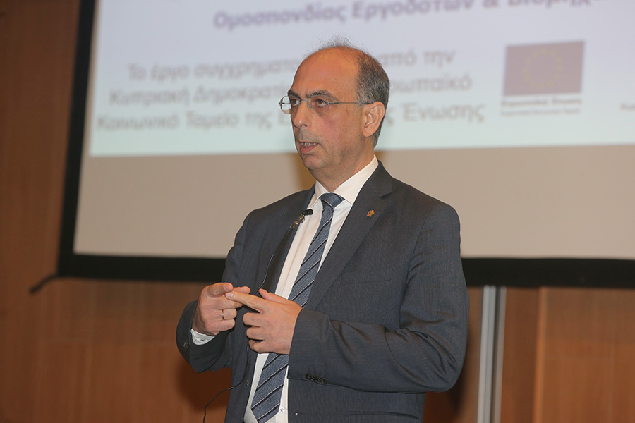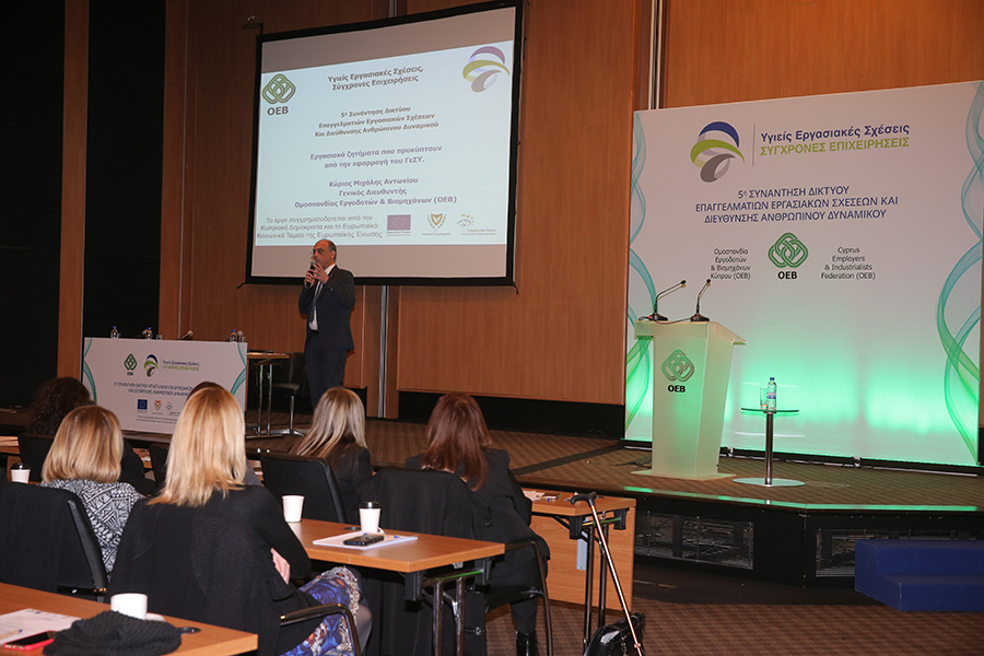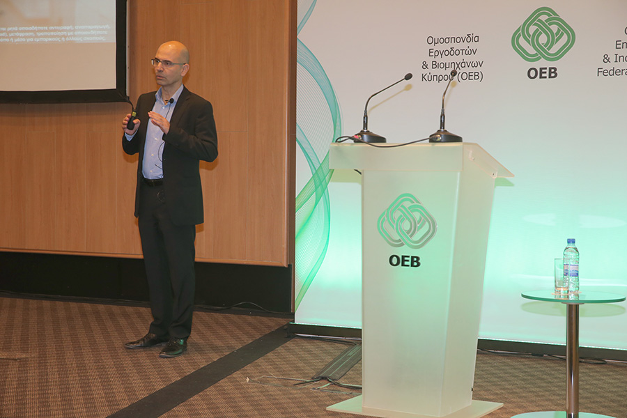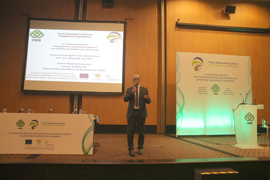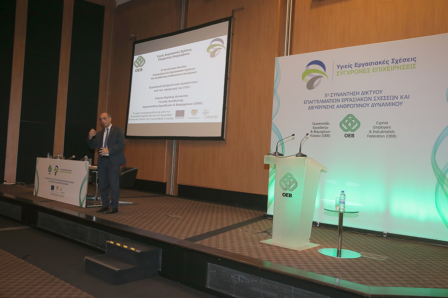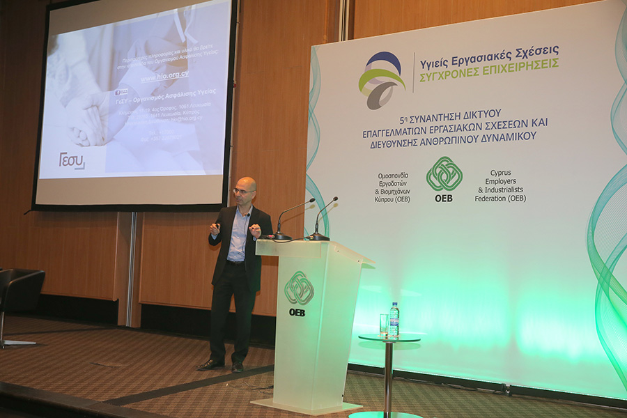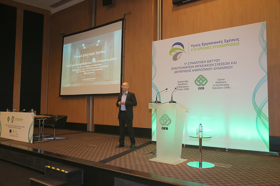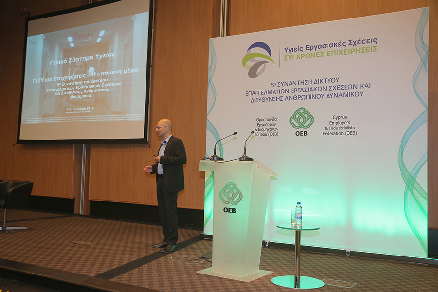 Ο Γενικός Διευθυντής της ΟΕΒ, Μιχάλης Αντωνίου μίλησε για τις αλλαγές που συνοδεύουν το ΓεΣΥ και οι οποίες αναμένεται να επηρεάσουν τις συνθήκες εργασίας και απασχόλησης στην Κύπρο. Μεταξύ άλλων, ο κ. Αντωνίου αναφέρθηκε στις προσπάθειες που γίνονται από μέρους της Ομοσπονδίας για να αντιμετωπιστούν οι προκλήσεις που προκύπτουν από την εφαρμογή του ΓεΣΥ μια από τις οποίες είναι η έναρξη των εισφορών για σκοπούς ΓεΣΥ πολύ πιο πριν από την έναρξη της παροχής υπηρεσιών του Γενικού Σχεδίου Υγείας.
